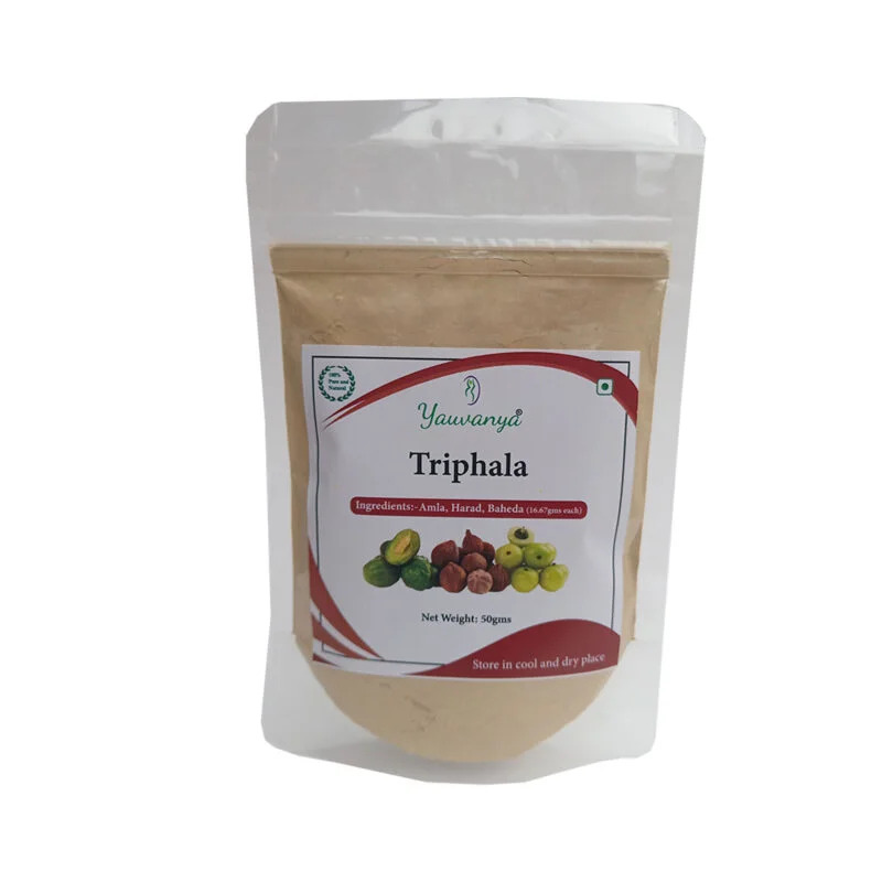 Triphala (Literal meaning three fruits) Powder is a popular herbal combination of three rejuvenating herbs – Amla (Indian Gooseberry) , Haritaki and Bibhitaki.