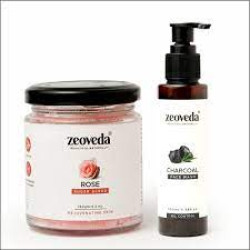 Zeoveda Charcoal Scrub + Rose Face Wash Combo